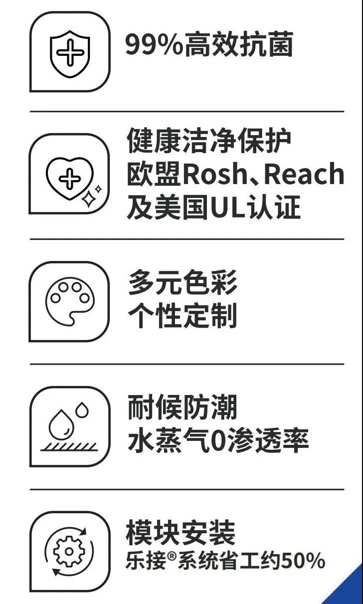 等特點。主要應用于各類醫院、體檢中心、醫美等醫療機構、食品(零食)專賣店、嬰幼兒早教機構、食品工廠、藥廠、化妝品車間、實驗研究中心等,主要應用的場景為內裝墻面,包含過道、連廊、病房間墻面、手術室、觀察室、檢測室、活動區、加工車間、檢測車間等區域。