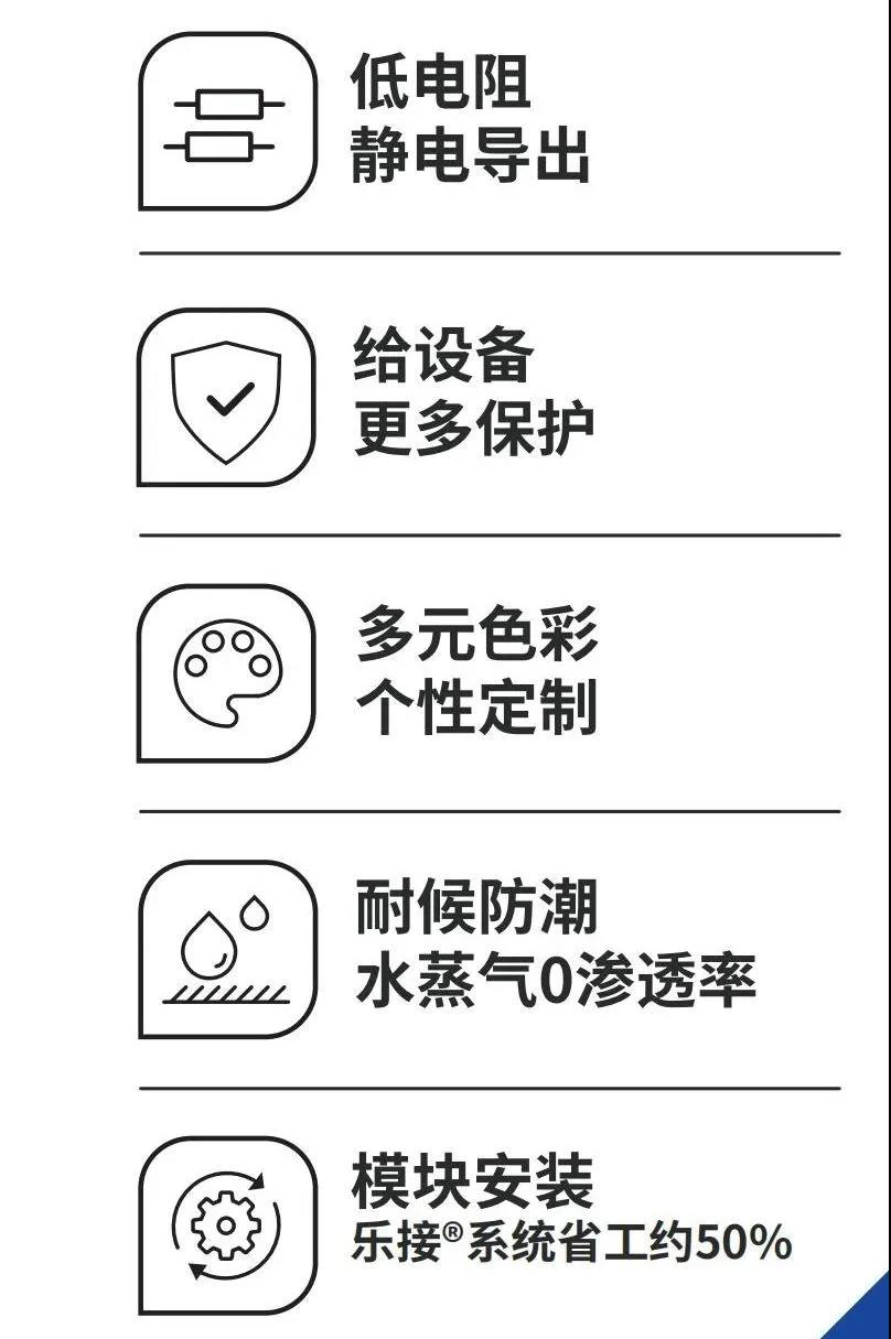 抗靜電系列鋁復合板表面具有能有效將靜電導出的功能涂料,可避免靜電堆積產生放電,破壞設備,相比于普通鋁復合板能給設備更好的保護,使設備完好率提升,具有