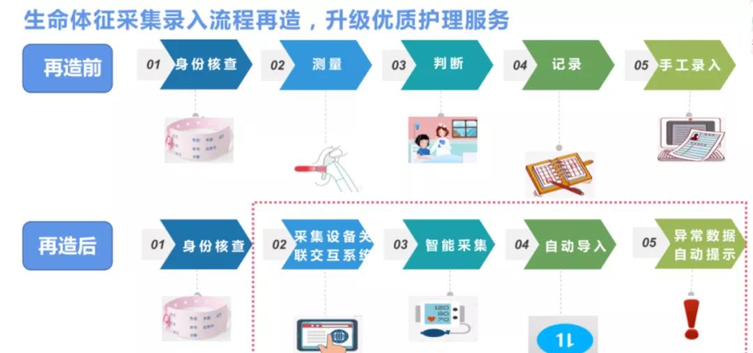 “生命體征采集與錄入”流程就在一些方案的支持下得到了非常方便的再造,其帶來的價值散見于多個醫院用戶的衛生經濟學角度的效果探究。我們期待類似研究多多益善,基于更多的觀察與分析,來共同探索和狀貌這種工作的真實社會價值。