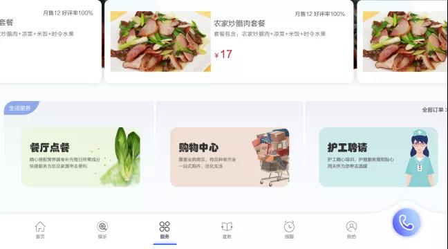 床旁終端的點餐界面和購物、服務預約入口