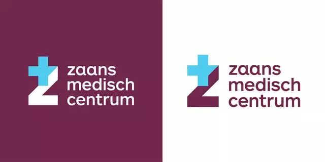Zaans Medisch Centrum的logo標識設計得很簡潔,紫紅+天藍的色彩搭配非常醒目。