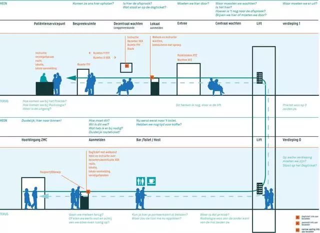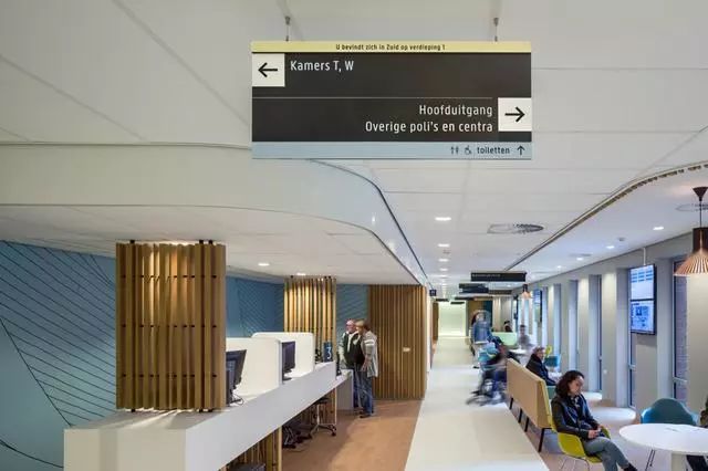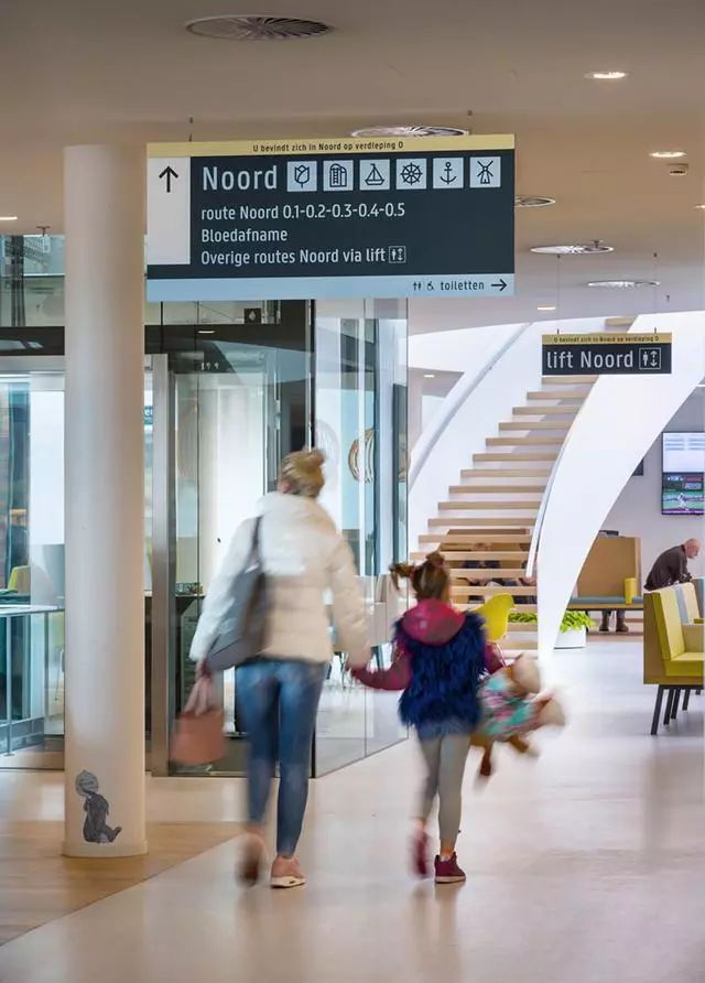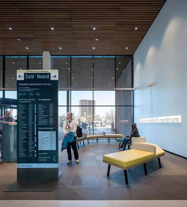 為了解決這個問題,Zaans Medisch Centrum設計團隊從醫院入口到內部,全程做好導視標牌的點位布置。