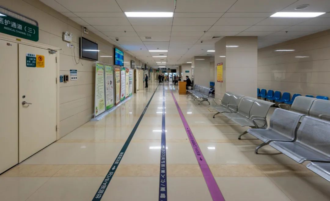 室內的水平通道、垂直通道要從功能的分布、各醫療流程進行梳理整合,選擇各種運輸梯臺數量與形式,從而提高醫院的整體運營效率。圖為上海市第六人民醫院門診醫技樓垂直電梯廳。