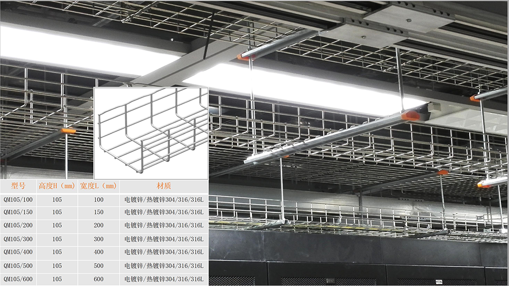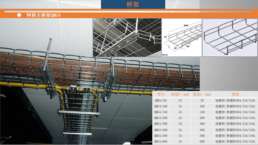 2. 經 久 耐 用、安 全 牢 固 。網格電纜橋架是 由 高 品 質 的 鋼 絲 焊 接 而 成,除了電鍍鋅和熱鍍鋅的表面處理,網格橋架和附件還提供高品質經去污處理的304L和316L不銹鋼系列,經鹽霧測試后表面,其使用壽命是未經處理的不銹鋼的三到四倍,即使在嚴苛的環境下也能保證長期的耐用性。而且線路和設備的檢修非常快速安全。