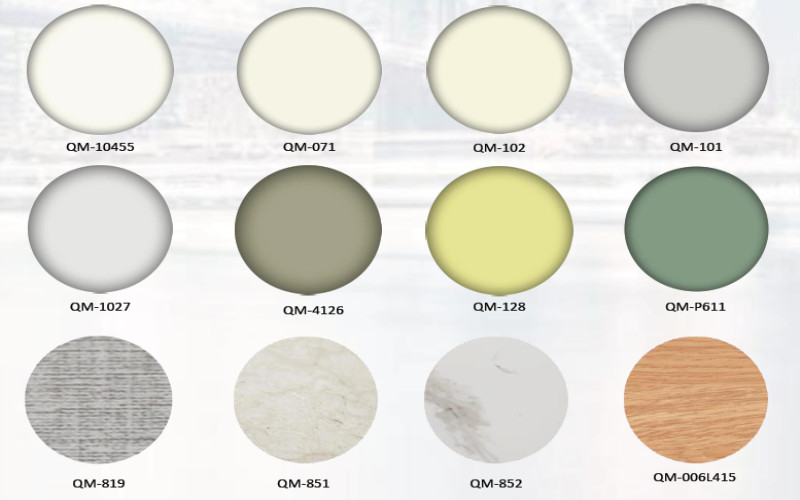 PVC覆膜:經(jīng)特殊處理的PVC皮膜經(jīng)高溫可覆在金屬鋼板上,使產(chǎn)品具有良好的防蝕性、防酸堿、耐化學(xué)醫(yī)藥性等特征,且皮膜與金屬鋼板隔絕空氣和水分,具有防霉作用。(可定制紋理)