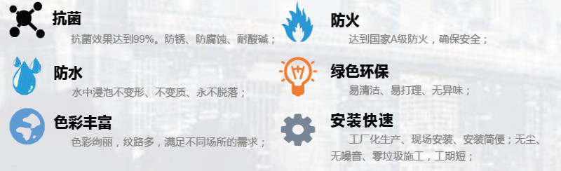 因此在選用墻板、天花等裝飾材料時(shí)就必須考慮產(chǎn)品的抗菌、抗霉、防火、防水抗撞擊等綜合性能。